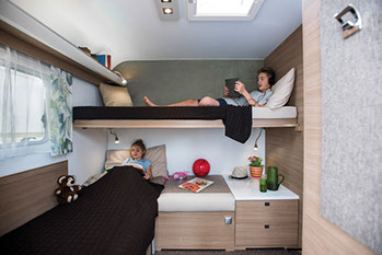 Adria non ha cambiato la formula vincente di Adora per la stagione 2019; perché avrebbe dovuto? Sì, ci sono alcuni piccoli miglioramenti nei dettagli, come le nuove luci posteriori a LED e pneumatici migliorati, ma le modifiche principali riguardano le scelte di tessuti per interni e nuovi arredi soft. Erna: "Abbiamo parlato con numerosi clienti ed è emerso un pubblico significativo che ama Adora, soprattutto tra coloro che viaggiano con figli adolescenti. Alcuni concorrenti offrono ovviamente i cosiddetti "modelli familiari", ma questi offrono solo alcuni letti a castello in più. Noi, invece, abbiamo voluto spingerci oltre. Da queste discussioni abbiamo sviluppato il cosiddetto "layout per adolescenti": il principio è che questo caravan ha due porte e diversi spazi abitativi discreti, il che è molto utile per molte famiglie"