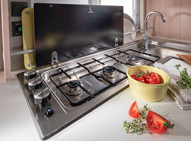 There’s practical touches everywhere you look, from the ample storage places to the loudspeakers, pre-installation for Bluetooth amplifier and USB sockets. There’s some neat touches with Vanity Pack to go features and a Kid’s Play Set on two models as a nice optional feature. Heating is by Truma as an option, with Trumavent and floor heating on bigger layouts.