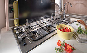 The living spaces offer classic, practical comfort in the seating groups which use quality materials and a choice of modern textiles. The kitchen is a model of practicality and the bathroom too, where everything is in the right place. The bedrooms deliver comfortable sleeping for up-to nine people, dependent on the layout and this year, all new mattresses for comfort and support.