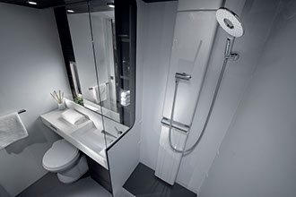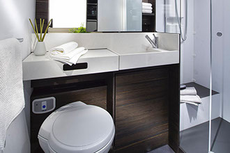 Esta innovadora distribución ofrece el espacio perfecto para una pareja o una familia completa, gracias a su sala de estar acogedora y su baño con dimensiones de spa. Literas para dormir para 2+2 personas.