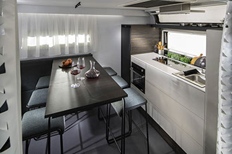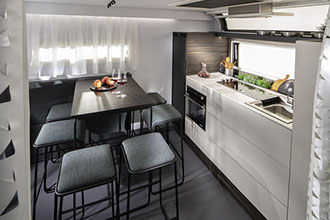 En muchos sentidos, Astella integra lo mejor que ofrecen tanto las casas de vacaciones como las caravanas. La casa gira en torno a la zona de estar de plano abierto, el salón y la zona de la cocina. Los dormitorios y los baños parecen salidos de un lujoso hotel boutique y todo parece fluir a la perfección, lo cual es ideal tanto para estancias cortas como largas. Como vehículo, Astella ha sido fabricada utilizando nuevas tecnologías, y cuenta con un nuevo bastidor integrado y una resistente carrocería de estructura Comprex.