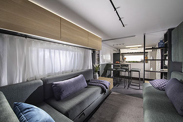 La distribución perfecta para una familia o un grupo de personas más numeroso gracias a su innovadora zona de estar que ofrece espacio suficiente para dormir y socializar. Literas para dormir para 2+4 personas.
