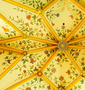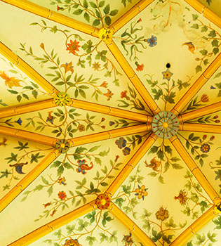 Incluso en los días de lluvia hay algo que fotografiar. El hermoso techo abovedado en el interior de la iglesia de San Pedro, Radovljica.