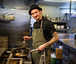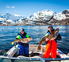 Maren Anna En la aldea de pescadores de Sørvågen, en la isla de Moskenesøya, quedamos con el chef Tommi y su amigo pescador Petter. Varias veces a la semana, Petter va a pescar, en solitario o con turistas, y la pesca que obtiene la entrega al restaurante. Como cuando estuvimos allí era temporada de bacalao (que va desde enero hasta finales de abril), tuvimos la suerte de poder acompañar a Petter en una de sus excursiones pesqueras. Nunca olvidaremos lo que sentimos al pescar nuestro propio bacalao en un mar totalmente en calma con el sol brillando en lo alto. Por la noche, nos acomodamos en el restaurante y degustamos el pescado que ese mismo día capturamos directamente de la costa con cariño y con las nuevas habilidades que adquirimos, y supimos que todo ello nos aportaría suficiente material para crear un recuerdo de por vida. Tommi Bjørnsen se fue de Lofoten siendo muy joven para trasladarse al continente y aprender todo lo posible sobre el arte de cocinar. Tras pasar varios años aprendiendo el oficio en algunos de los restaurantes más famosos de Oslo, regresó a Lofoten para hacerse cargo del restaurante de Maren Anna en Sørvågen, que hasta ese momento habían regentado sus padres. «Con los ingredientes locales típicos de Lofoten y la experiencia adquirida en cocina francesa, en mis platos ofrecía lo que más amaba: la cocina nórdica aderezada con influencias de todo el mundo», comenta Björnsen. Petter Thoresen se encarga de gestionar Nordic Fishing Adventures. Ofrece todo tipo de experiencias, desde excursiones de pesca de entre 3 y 4 horas de duración hasta paquetes de aventuras con pernoctación, en los que uno mismo se puede preparar el pescado que ha capturado con la ayuda de los chefs de Maren Anna. «Si pudiera, me pasaría todo el tiempo en el barco, pero tal y como están las cosas ahora, solo suelo estar por aquí seis días de siete», comenta sonriendo Thoresen.