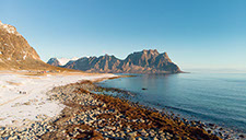 The two magical beaches have Mt Mannen as their common denominator. With its white sand and turquoise water, the beach is one of the most beautiful beaches in the world. Hike along the old, 5-km road around the mountain or climb Mt Mannen to enjoy a breath-taking view and an experience that words cannot describe. In summer, the locals open the little café found at the old power station, where visitors are treated to Norwegian coffee and delicious baked goods. During the winter months, the shores become the destination for observing the Northern Lights.