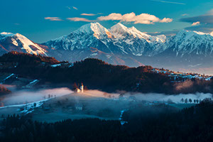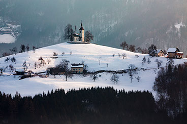 Misty sunrise view across the Ljubljana Moors with the city of Ljubljana in the distance.Even on a rainy day there is something to photograph.The beautiful vaulted ceiling inside Saint Peter’s Church, Radovljica.Or focus on some architectural details. The Romanesque doorway, Saint Peter’s church, Radovljica.