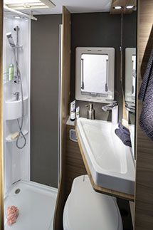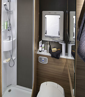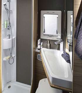 Adria motorhomes also offer a range of more traditional bathroom formats, including en-suite and separate shower, dependent on layout.