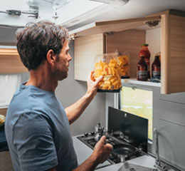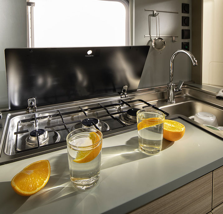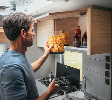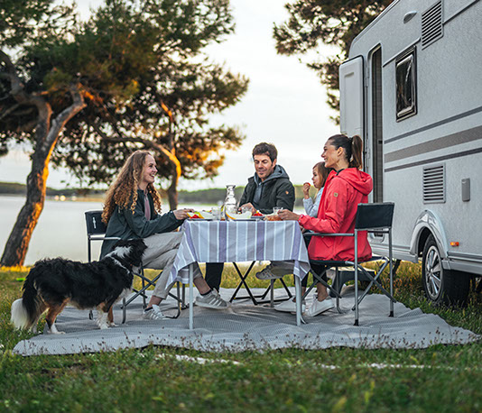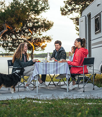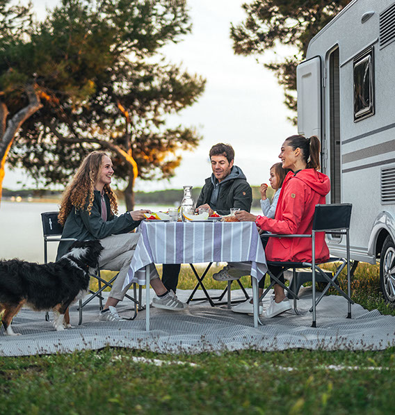 ”ALTEA 472KP. EN INNOVATIV, SPORTIG PLANLÖSNING MED ETT NYTT MODULKÖK SOM GER EXTRA FRIHET OCH FÖRVARINGSMÖJLIGHETER, MED ETT UTSKJUTBART KÖK EXKLUSIVT FÖR ADRIA, UTMÄRKT FÖR FRILUFTSLIV.”