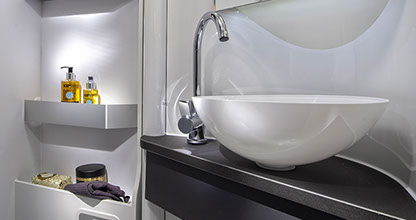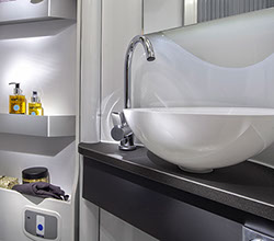 ADRIA HUSBILAR ERBJUDER ÄVEN EN SERIE AV MER TRADITIONELLA BADRUMSFORMAT, INKLUSIVE ANSLUTANDE OCH SEPARATA DUSCHUTRYMMEN, BEROENDE PÅ PLANLÖSNINGEN.