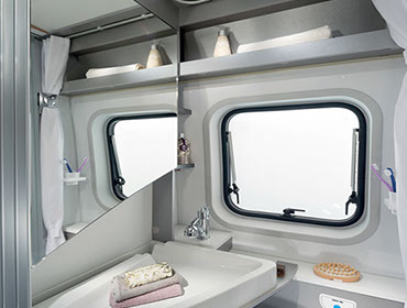 – NAŠA ERGONOMSKO OBLIKOVANA KOPALNICA Z ZLOŽLJIVIM UMIVALNIKOM.
