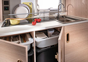 Praktični detajli so razporejeni po vsej prikolici – od prostornih prostorov za shranjevanje do zvočnikov, nastavkov za bluetoothovski ojačevalnik in vhodov USB. Nekaj simpatičnih detajlov najdemo tudi v kopalnici, na primer komplet kozmetičnih pripomočkov, in otroški igralni komplet pri dveh modelih kot izbirni dodatek. Ogrevanje Truma je opcijsko, pri večjih tlorisih sta možna tudi sistema Trumavent in talno ogrevanje.