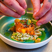 Maren Anna V ribiški vasici Sørvågen na otoku Moskenesøya smo se srečali s kuharjem Tommijem in njegovim prijateljem Pettrom, ki je ribič. Petter se večkrat na teden odpravi na ribolov, bodisi sam, bodisi s turisti, in ulov dostavi v restavracijo. Ker smo bili tam med sezono polenovke, ki traja od januarja do konca aprila, smo imeli srečo in Pettra spremljali na eni od njegovih ribolovnih poti. Občutek lovljenja lastne polenovke v popolnoma mirnem oceanu pod sončnimi žarki je nekaj, česar ne bomo nikoli pozabili. Zvečer smo sedeli v restavraciji in uživali v ribi, ki smo jo isti dan z ljubeznijo ujeli neposredno ob obali, in naših novih veščinah, za katere smo vedeli, da bodo zagotovile spomine za vse življenje. Tommi Bjørnsen je kot mladenič zapustil Lofote, da bi se preselil na celino in se naučil vsega o umetnosti kuhanja. Po nekaj letih učenja v nekaterih slavnih restavracijah v Oslu se je vrnil na Lofote, da bi prevzel restavracijo Maren Anna v mestu Sørvågen, ki so jo vodili njegovi starši. »Z lokalnimi sestavinami, značilnimi za Lofote, in izkušnjami, pridobljenimi v francoski kuhinji, strežem tisto, kar mi največ pomeni, torej nordijske jedi, nadgrajene z vplivi z vsega sveta,« pravi Björnsen. Petter Thoresen vodi podjetje Nordic Fishing Adventures. Ponuja vse od ribolovnih izletov, ki trajajo 3–4 ure, do celovitih avanturističnih paketov z nočitvami, kjer lahko udeleženci skupaj s kuharji iz restavracije Maren Anna pripravijo ribe, ki so jih ujeli. »Na čolnu bi preživel vse dni, če bi le lahko, vendar sem glede na sedanje razmere tukaj običajno samo šest od sedmih dni«, v smehu doda Thoresen.